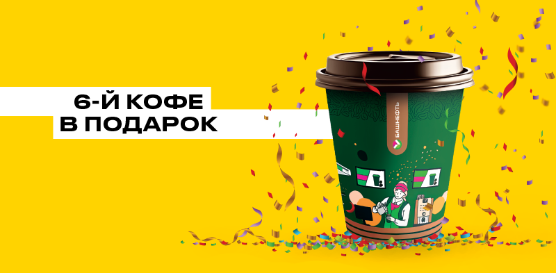 Каждый 6-й кофе в подарок при покупке кофе в сети АЗС "Башнефть" и "Роснефть" ряда регионов с картой лояльности "Семейная команда"!